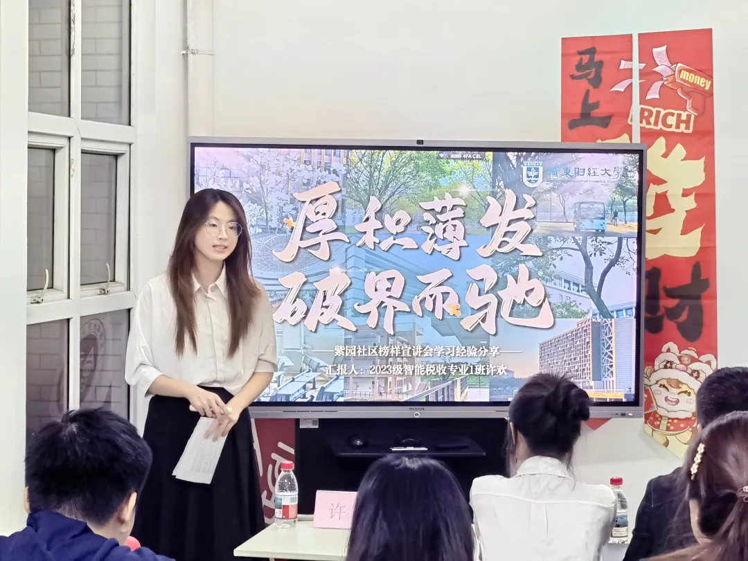 为打造一个深度融合“学-研-赛”一体化培养路径的学习型特色社区,2025年12月30日晚,由会计学院、财政税务学院、工商管理学院联合主办的“榜样引领,新年新志”主题宣讲活动在紫园17栋B-112党团活动室举办。紫园社区数十位学子齐聚一堂,在榜样分享中汲取奋进力量,在互动体验中寄托新年期许,共同定格属于青春的岁末暖光。