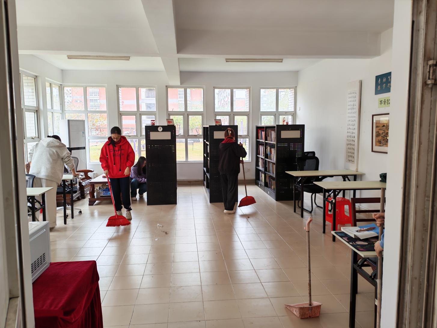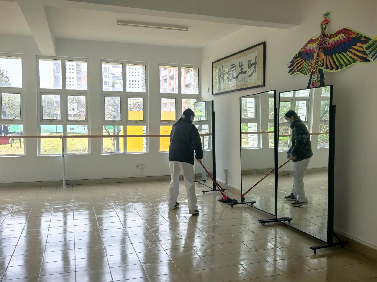 志愿者们躬身力行,对社区活动室、楼道等区域进行深度清洁,彻底清除卫生死角,以汗水擦亮环境底色。他们更将服务延伸一步:细致擦拭假期收纳的户外桌椅,并有序搬运至草坪区域,将闲置设施转化为可休憩、可交流的“户外会客厅”。从“扫一屋”到“美一域”,志愿者们用行动打通便民服务的“最后一米”,让奉献精神在共建共享中熠熠生辉。