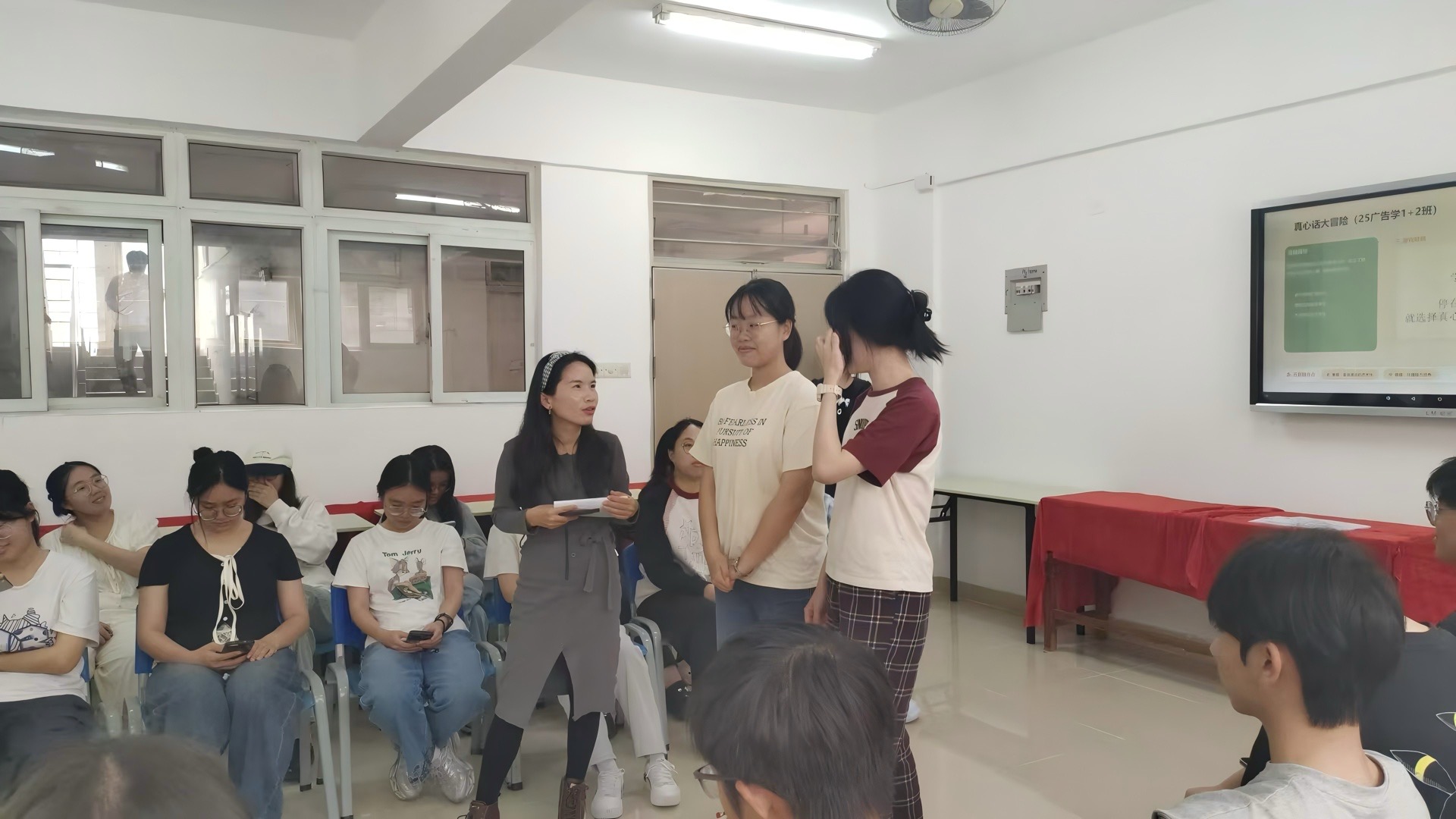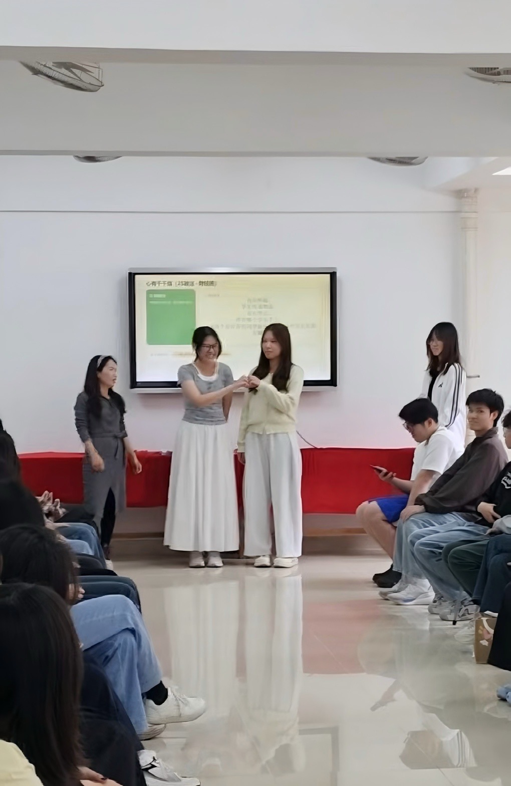 25广告学1、2班的同学们积极参与旨在促进成员自我探索和情感表达的“真心话大冒险”团辅游戏。通过一系列富有深度的问题,大家不仅分享了内心的真实感受,还加深了彼此之间的理解。而大冒险环节则鼓励同学们突破舒适区,比如通过身体语言表达心情并发布朋友圈获赞,或是给予同学一个深深的拥抱以示感激之情。有效地培养了学生们在生活中提升情绪价值的能力与情感交流表达能力,符合五育中“德育”与“美育”的培养方案。