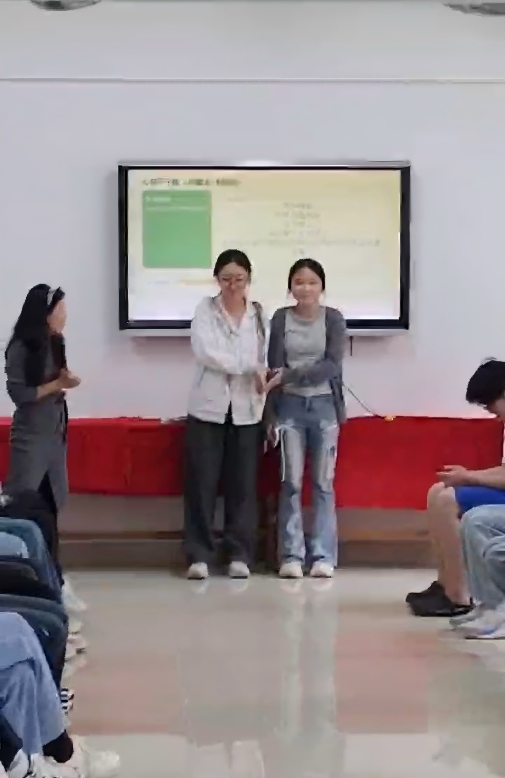 25全媒体1班,开启了一场别开生面的“信任心相印”的默契互动旅程,培养学生之间互动的默契感、增加两人相互认识的速度,通过让学生和学生身后的同学,一起回答问题,直到两人答案一致时游戏结束,由此同学们得以深入了解五育中“智育”与“劳育”的真切含义,培养生活感知力、训练发散思维。