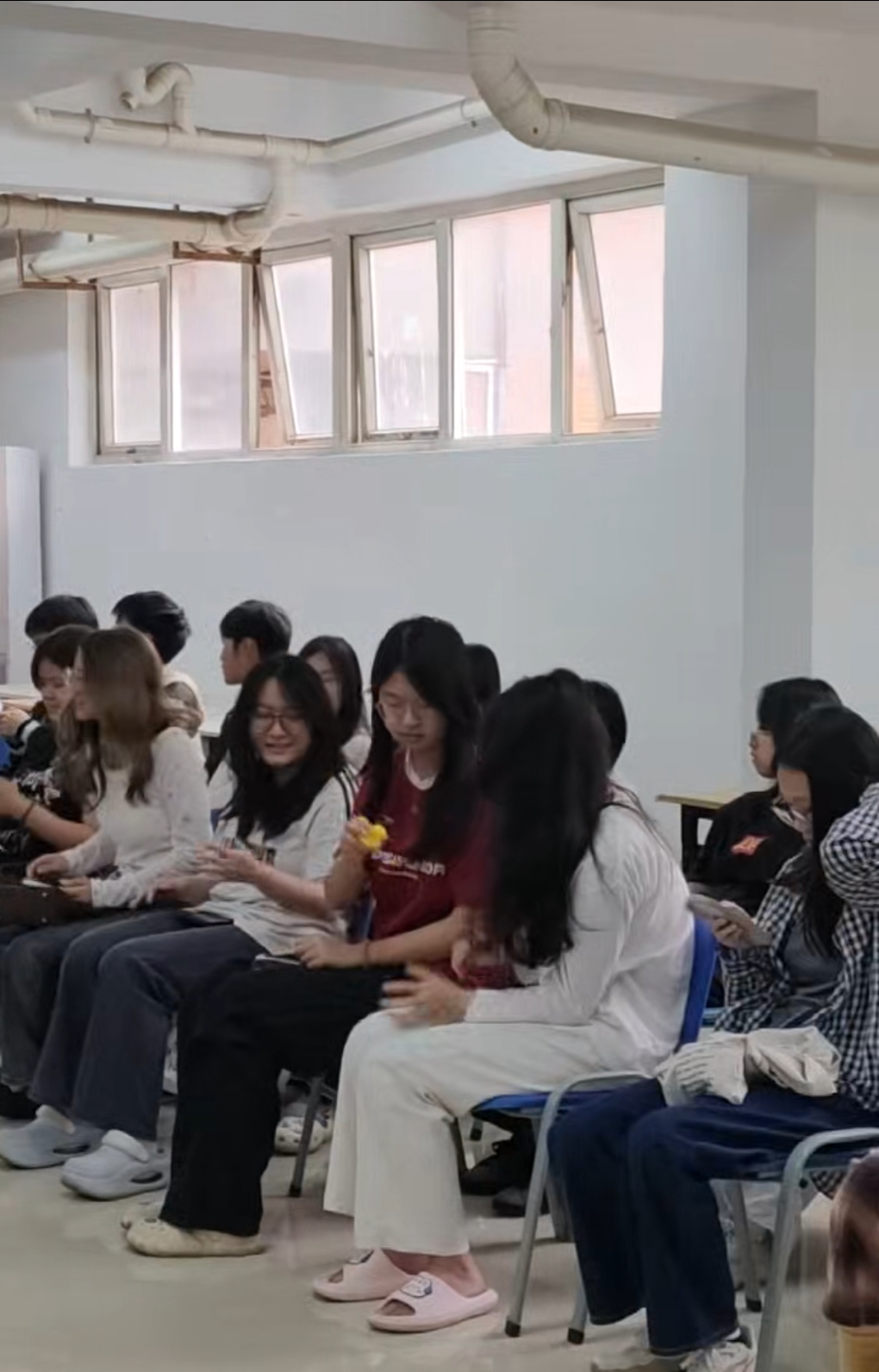25政法新闻1班与财经新闻1班,在黄少芬老师的带领下,开展了“心有千千结”的趣味互动活动,全体同学热情参与。活动中,音乐响起时同学们依次传递物品,当旋律停止,物品停留处的同学需与后面伙伴默契配合,共同比出心形手势,并在朋友圈分享这份温暖瞬间。活动既锻炼了身体协调性,也在趣味协作中训练了逻辑思维,让同学们在互动中感受团队力量,进一步拉近了彼此的距离。