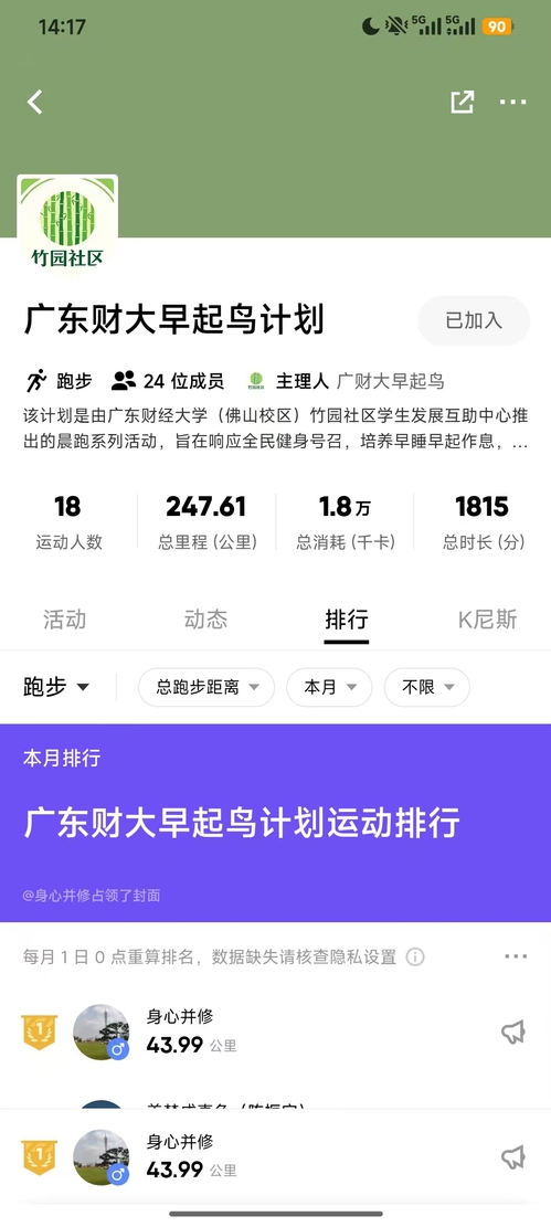 3、打卡要求:统一使用【Keep】APP打卡统计,提前下载后加入活动专属小组,打卡数据以小组记录为准(加入后修改备注为“姓名-2*级-**专业”)。