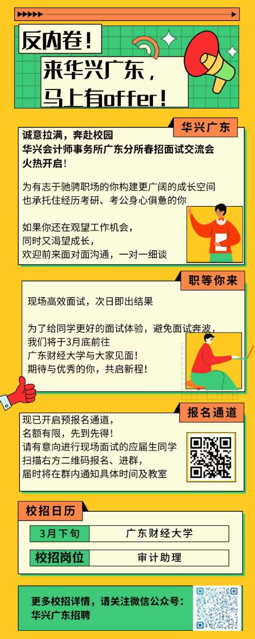为进一步推进学生就业工作,助力应届毕业生实现高质量充分就业,会计学院邀请华兴会计师事务所广东分所进校开展春招面试交流会,为学子搭建优质就业对接平台,具体通知如下: