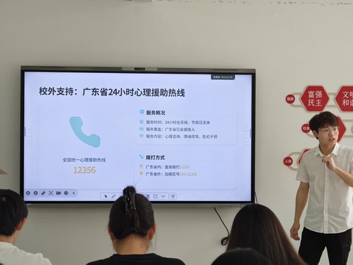 强大的社会支持网络是心理委员坚实的后盾。无论是辅导员的悉心指导,还是位于厚德楼的学校心理健康教育中心,亦或是广东省24小时心理援助热线(12356),都在时刻为大家保驾护航。