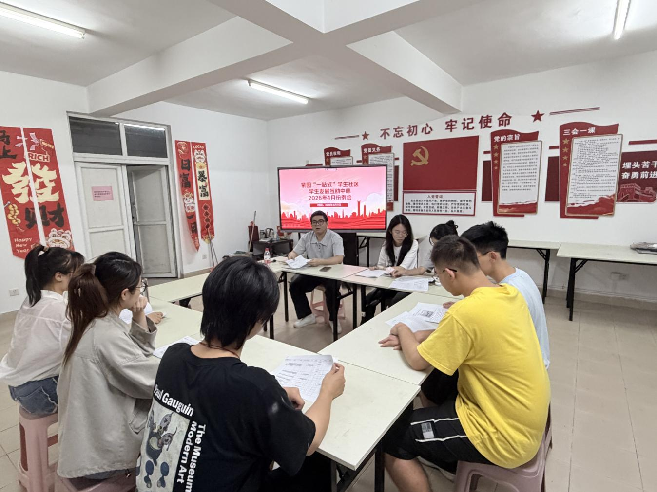 2026年4月7日,紫园社区学生发展互助中心工作例会在社区活动室召开。指导老师刘振泳主持会议,社区全体学生骨干参会。会议围绕近期社区建设情况、志愿服务体系建设、日常管理优化及重点活动复盘等议题展开。