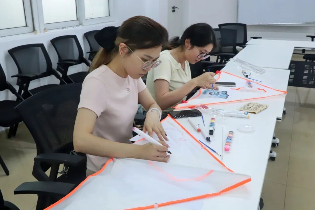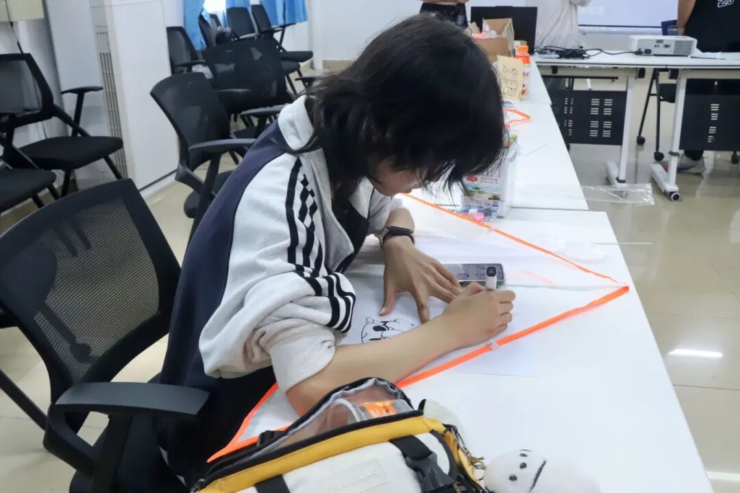 趣味问答环节结束后,正式进入备受期待的风筝DIY创作环节。生活部工作人员有序为每一位同学分发空白风筝、彩色颜料、画笔、调色盘等手工材料,耐心细致地讲解本次DIY活动的操作细则、注意事项与创作小技巧,帮助大家顺利开启创作。同学们纷纷发挥天马行空的想象力与独特的审美创意,手执画笔精心调配色彩,一笔一画认真为空白风筝上色,或是勾勒可爱卡通形象,或是描绘春日烂漫景致,或是写下专属青春寄语。一只只独一无二的风筝渐渐成型,尽显同学们超强的动手实践能力与满满的创意巧思,现场满是专注创作的身影与轻松愉悦的氛围。
