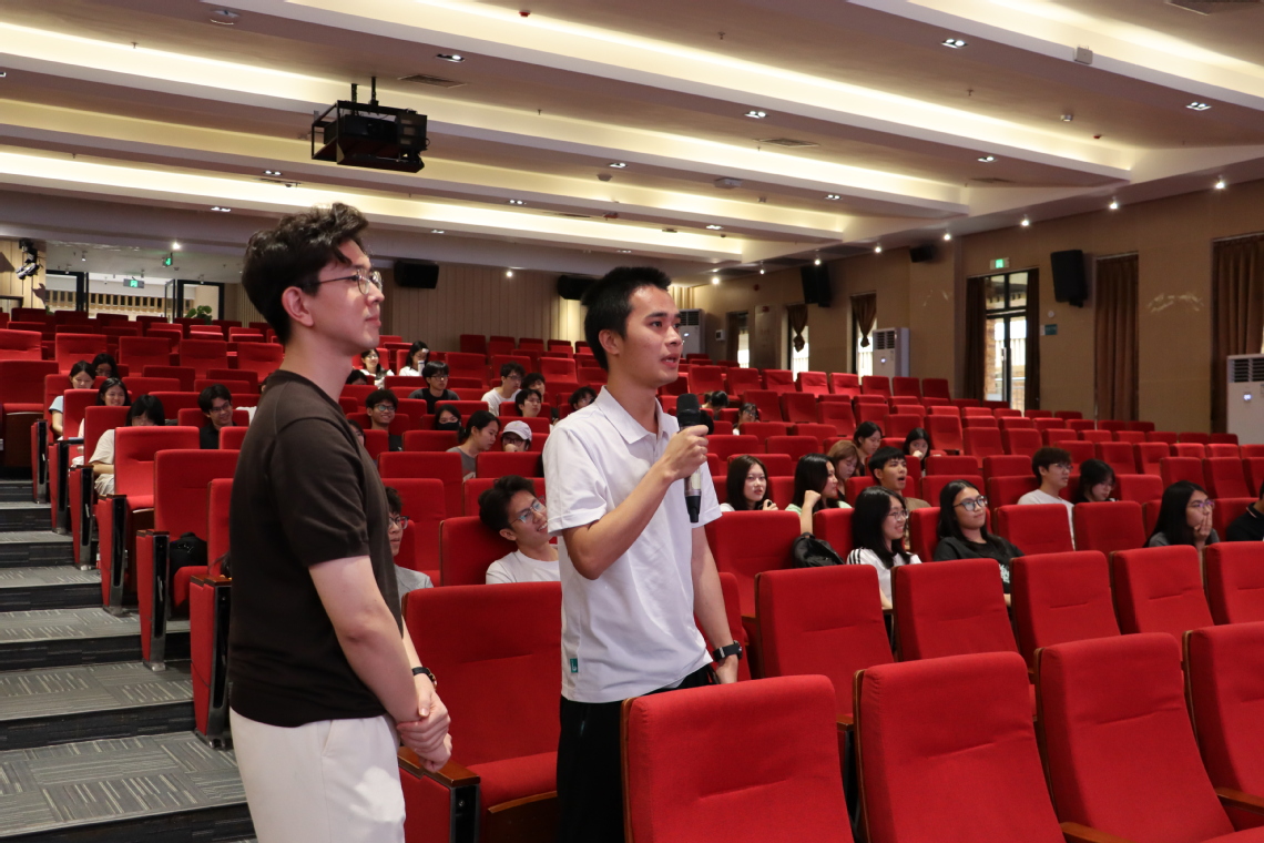 此外,黄炜丹指出得体的仪态与自然的表情是重要的“副语言”,能够显著增强有声语言表达的感染力与说服力。此外,他结合2024级学生的特点以及平时对学生的观察,从着装、站姿、手势、眼神交流、话筒握持方式等方面进行示范,对一些常见的误区一一作了剖析,帮助大家理解和掌握相关技能。