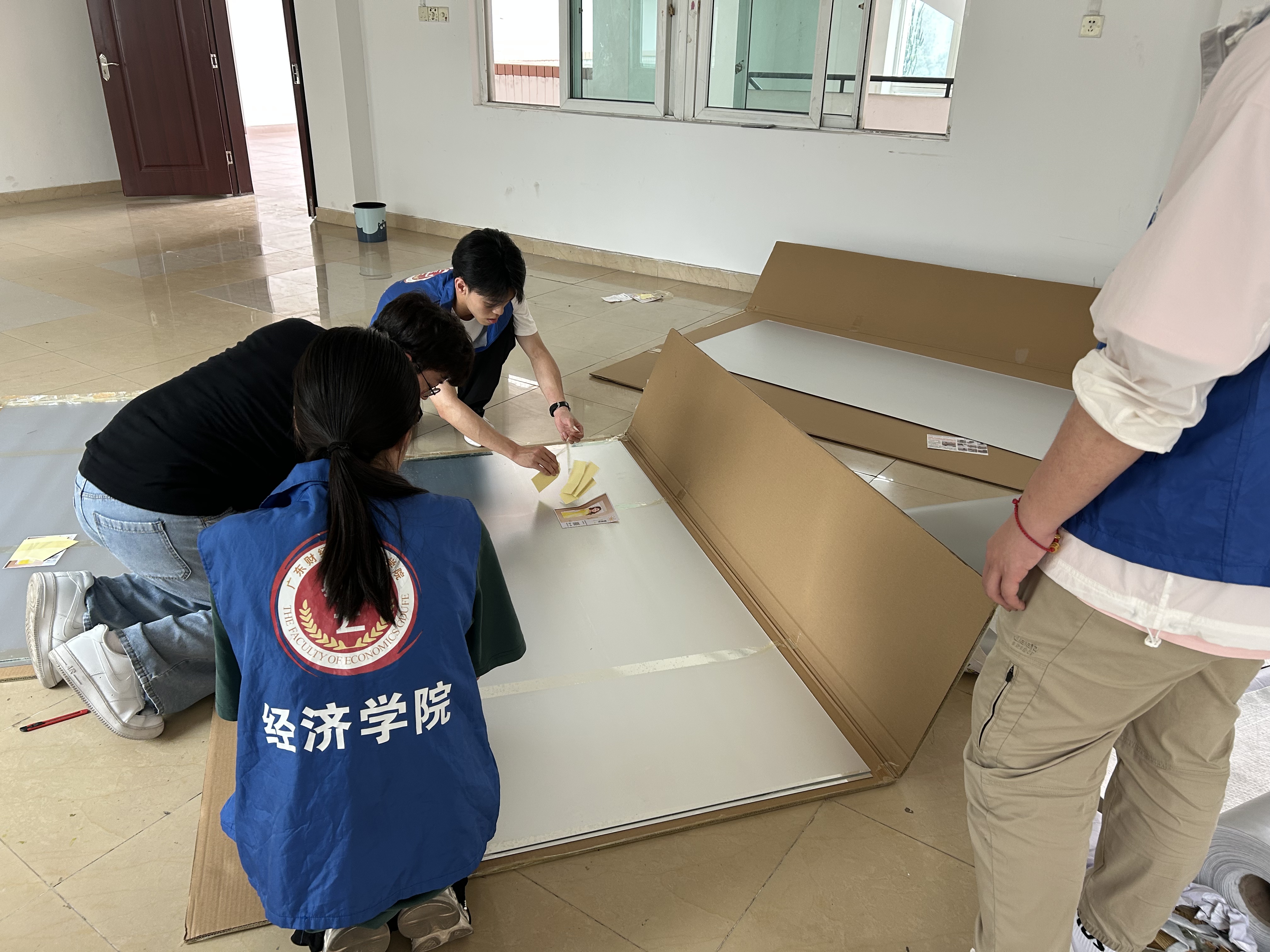 4月21日下午,杏园“一站式”学生社区学生发展互助中心学生骨干在杏园2栋329功能室集中开展劳动教育暨舞蹈室美化活动,经济学院辅导员黄炜丹、张志成到场参加。
