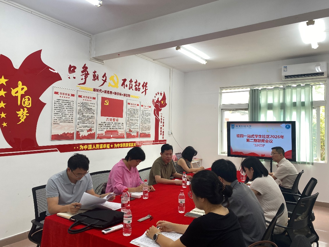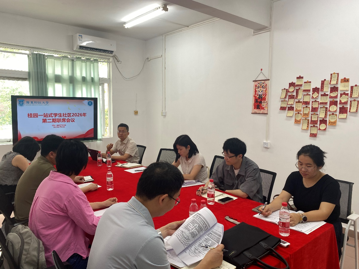 4月22日上午,桂园“一站式”学生社区2026年第二期联席会议在佛山校区桂园6栋329党团会议室召开。经济学院党委副书记曹飞丽、人力资源学院党委副书记阮方明、学生工作部学生思想政治教育科副科长张兆胜及相关学院辅导员代表参加会议。会议由人力资源学院党委副书记阮方明主持。